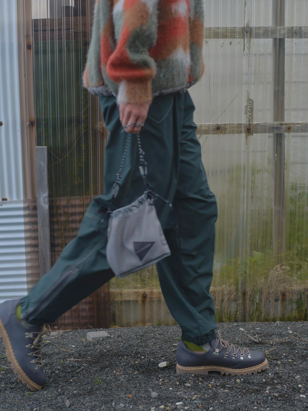 • mix color shaggy knit sweater ¥50,600(税込)high count cloth side zip hem pants ¥35,200(税込)UL wallet with Dyneema® ¥13,200(税込)Paraboot × and wander CLUSAZ ¥110,000(税込)