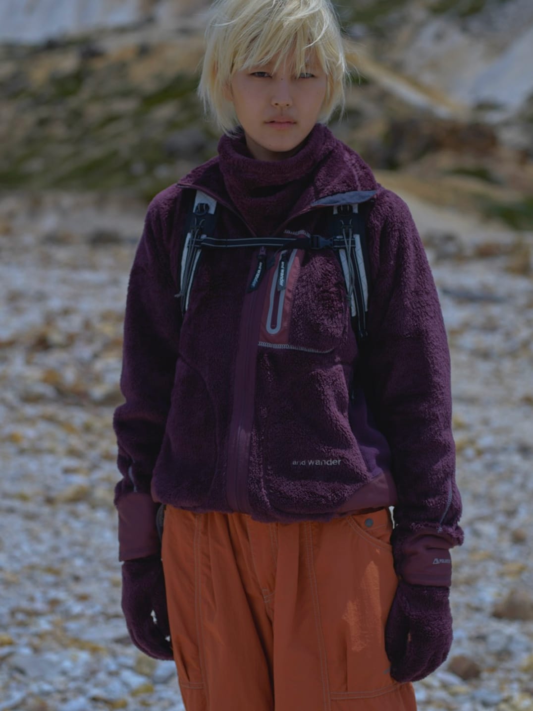 • high loft fleece jacket ¥52,800(税込)crinkled nylon pants ¥30,800(税込)ECOPAK 20L daypack ¥30,800(税込)high loft fleece glove ¥14,300(税込)high loft fleece neck warmer ¥11,000(税込)